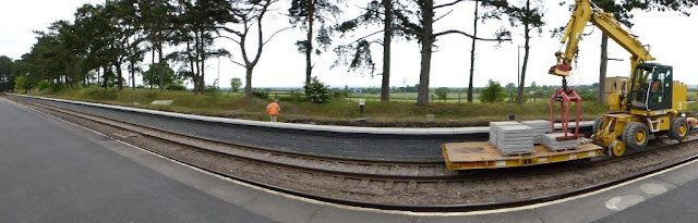 The answer was barrowing.... brave men they were who did this. At least the platform wall surface was nice and level. Later the Pway trolley was also pressed into service, but you can't beat a 'barrer'.